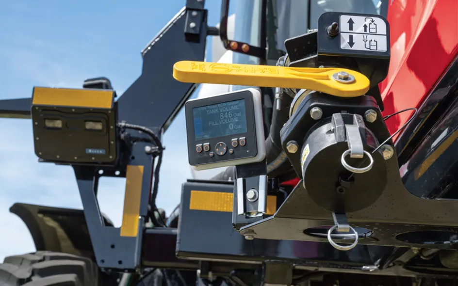 It should also be noted that the quick-filling system is equipped with a counter, which allows you to clearly track the amount of filled liquid regardless of its density. This greatly simplifies the operator's work and allows for better planning of the work process without having to repeatedly move around the field for refueling.